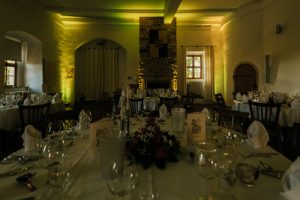 Mit einer schmucken Ambienteausleuchtung Ihrer Angermünder Hochzeitslocation kann ich ebenfalls aufwarten. Sie besteht aus mehreren, gleichartigen Lampen, sogenannten Floorspots, die auf dem Fußboden entlang der Wände aufgebaut werden. Von dort aus strahlen sie nach oben weg und verleihen dem Saal oder Restaurant in Angermünde eine festliche Atmosphäre. Wenn sie es wünschen, können die Floorspots in Ihrer Lieblingsfarbe programmiert werden oder mit der Dekoration wie Tischdecken, Servietten oder Blumenschmuck abgeglichen werden.